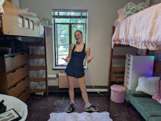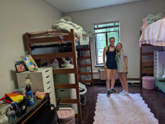 Jay working on setting up her side of the room.