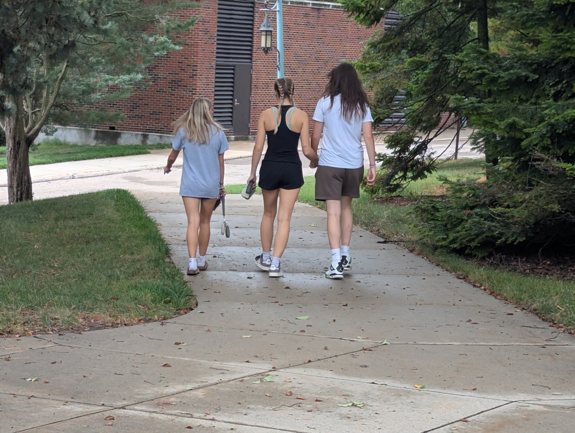 Avery, Jayden, and Hanna walking across campus...