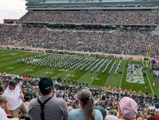 The Michigan State Spartans marching band (and alumni) on the field prior to the start of the game.
