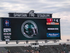 The game itself was decent. Michigan State was playing Youngstown State, and the score reflected the different status of the two teams and their respective conferences. Michigan State won handily, by a score of 41-24. Being a Michigan Wolverines fan made it difficult to get to excited by the action, but we all enjoyed the game and had a good time overall. Well, aside from the pretzel incident, that is. Drew had gone and picked up a salted pretzel and bought the cheese sauce to dip in (he wasn't impressed), but while trying to balance everything the pretzel ended up sliding off his lap and hitting the floor. Sucks to spend money on food and not enjoy it, but stuff happens. The cheese followed suit, however, and when it hit the ground it splattered all over - all over Drew, me, the people in front of us, the people two rows in front of us. Thankfully everyone was cool about it, and everyone did their best to reassure Drew that it wasn't a big deal, but he was still pretty upset about the whole incident. I get it, but I tried to get him to realize that sometimes shit just happens and to try to enjoy himself anyway.
