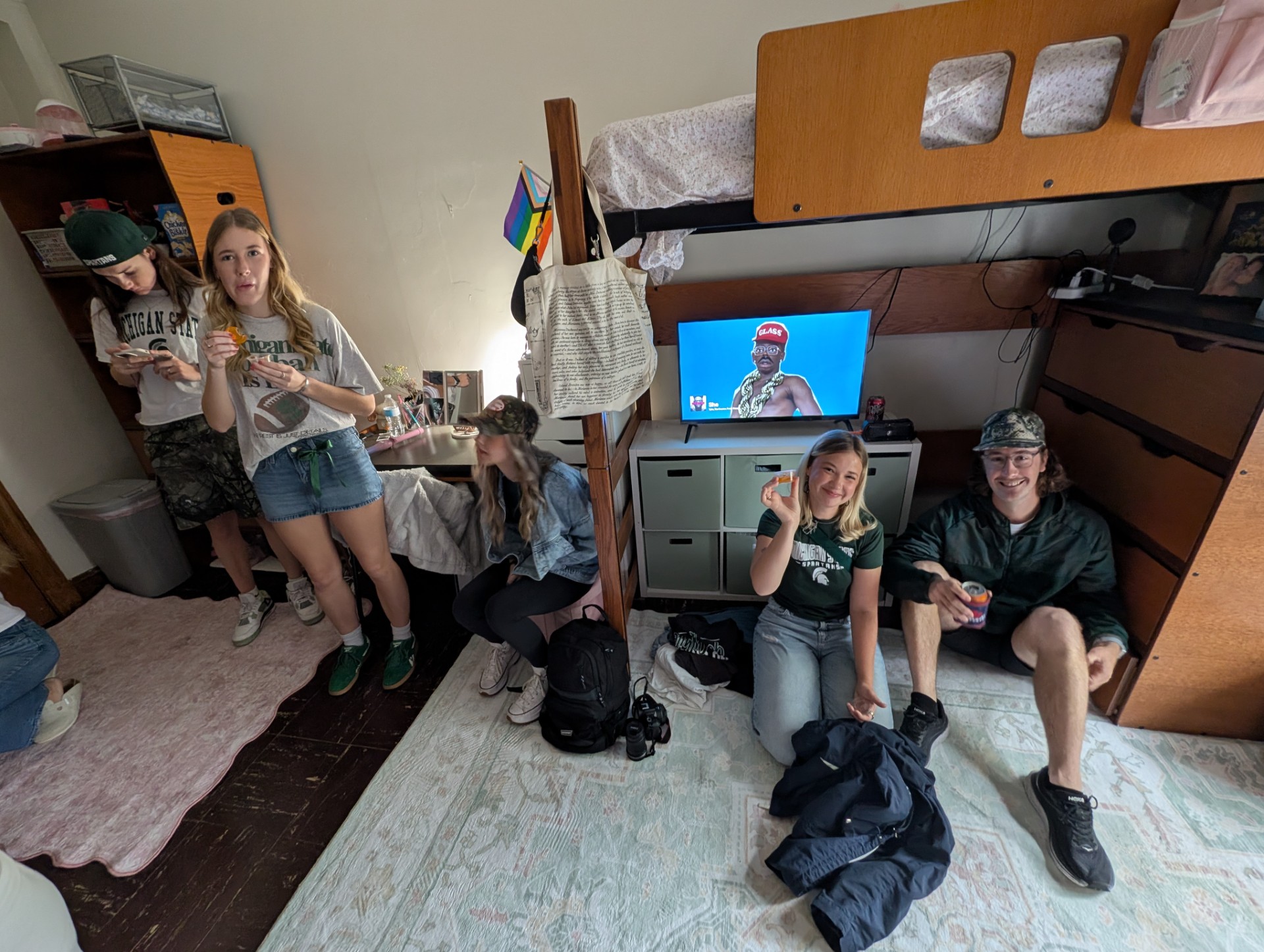 Tyler, Rose, Samantha, and I woke up this morning with the intent to leave the house by 10:30am in order to drive to East Lansing to meet up with Jayden and partake in the day's activities. Drew and Teagan were meeting us at the house and riding along with us as well. Unfortunately, Tara had to attend the funeral of her Aunt Diane, so she was going to miss a portion of our day.