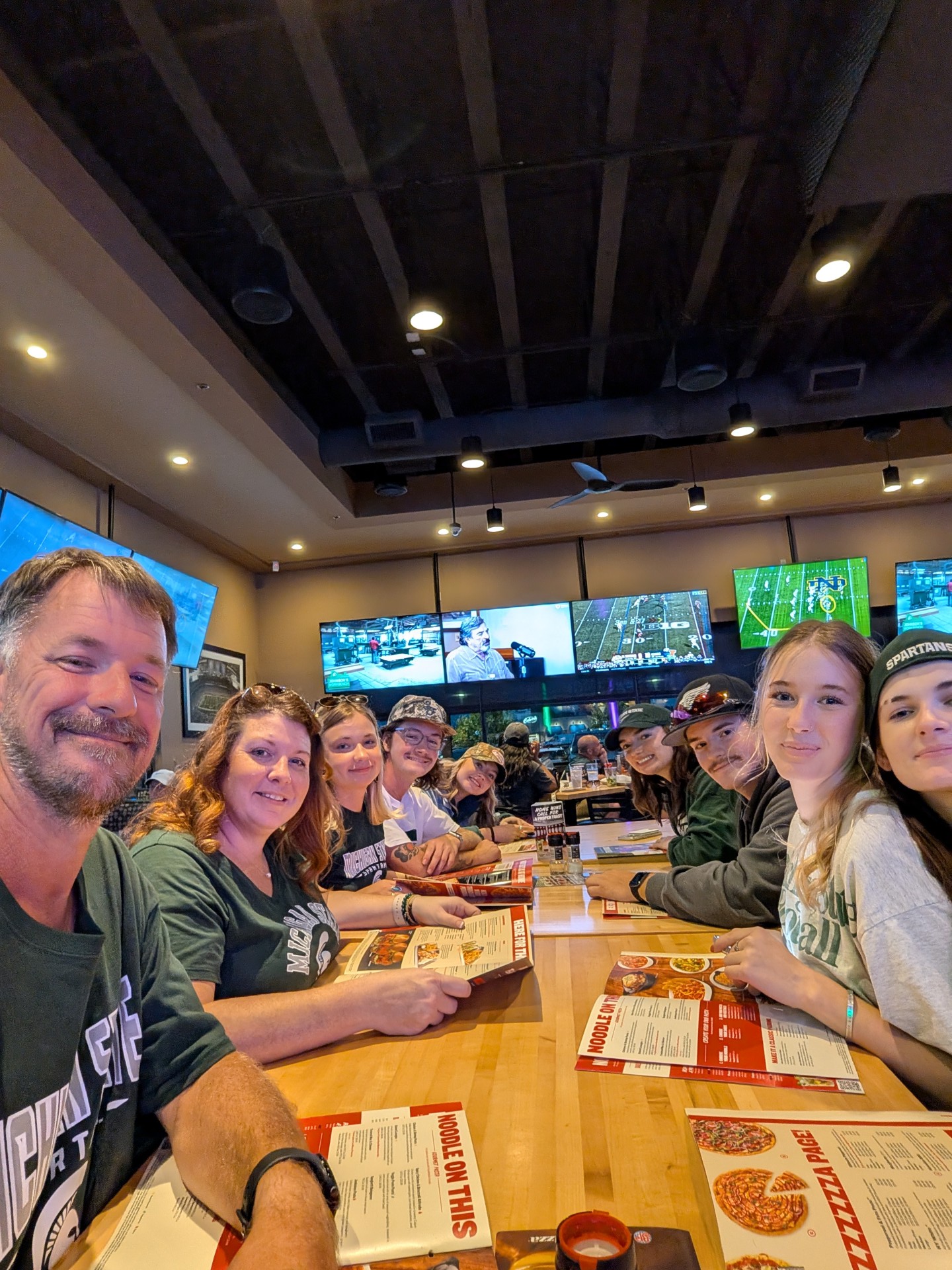 We walked downtown to find a place to eat, and settled on Hopcat (everyone likes their fries!), but because of our party size our wait was going to be over two hours! None of us wanted to hang around that long. Unfortunately, everything downtown was like that - the game had just let out, and it was family weekend afterall. We ended up making a short drive to the Boston's Pizza Restaurant & Sports Bar in Lansing, where we enjoyed a meal together.