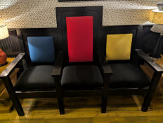 A cool couch inside of the Third Man Records building.