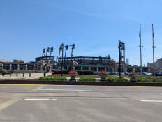 A look across Woodward Avenue to Comerica Park, home of the Detroit Tigers.