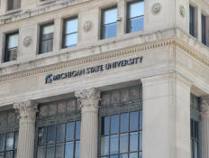 I couldn't identify the building or it's purpose, but Jay was excited to see Michigan State University represented downtown.