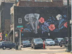 A mural on the side of the Elephant Room in Detroit.