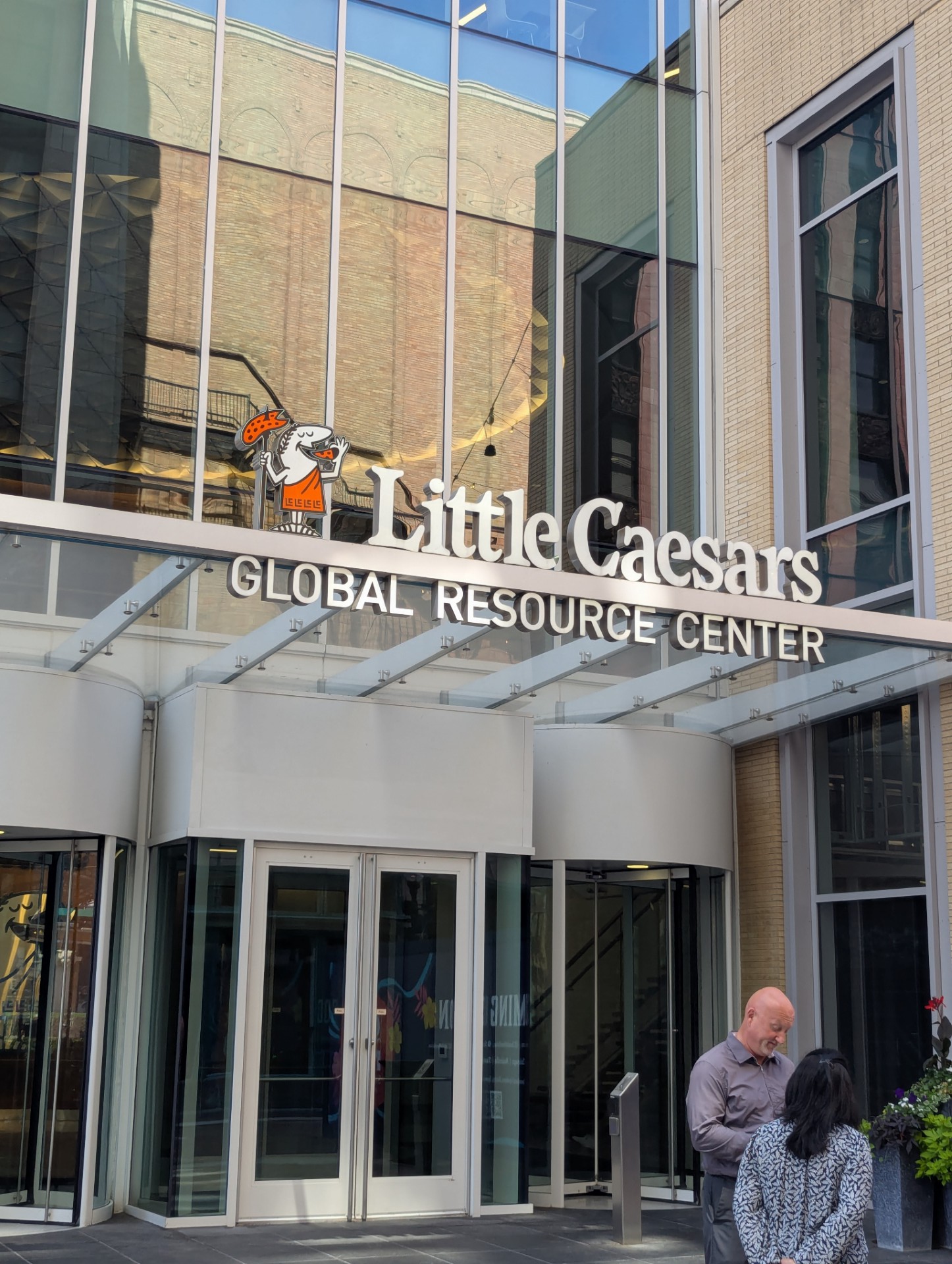 The entrance to the Little Caesars Global Resource Center...