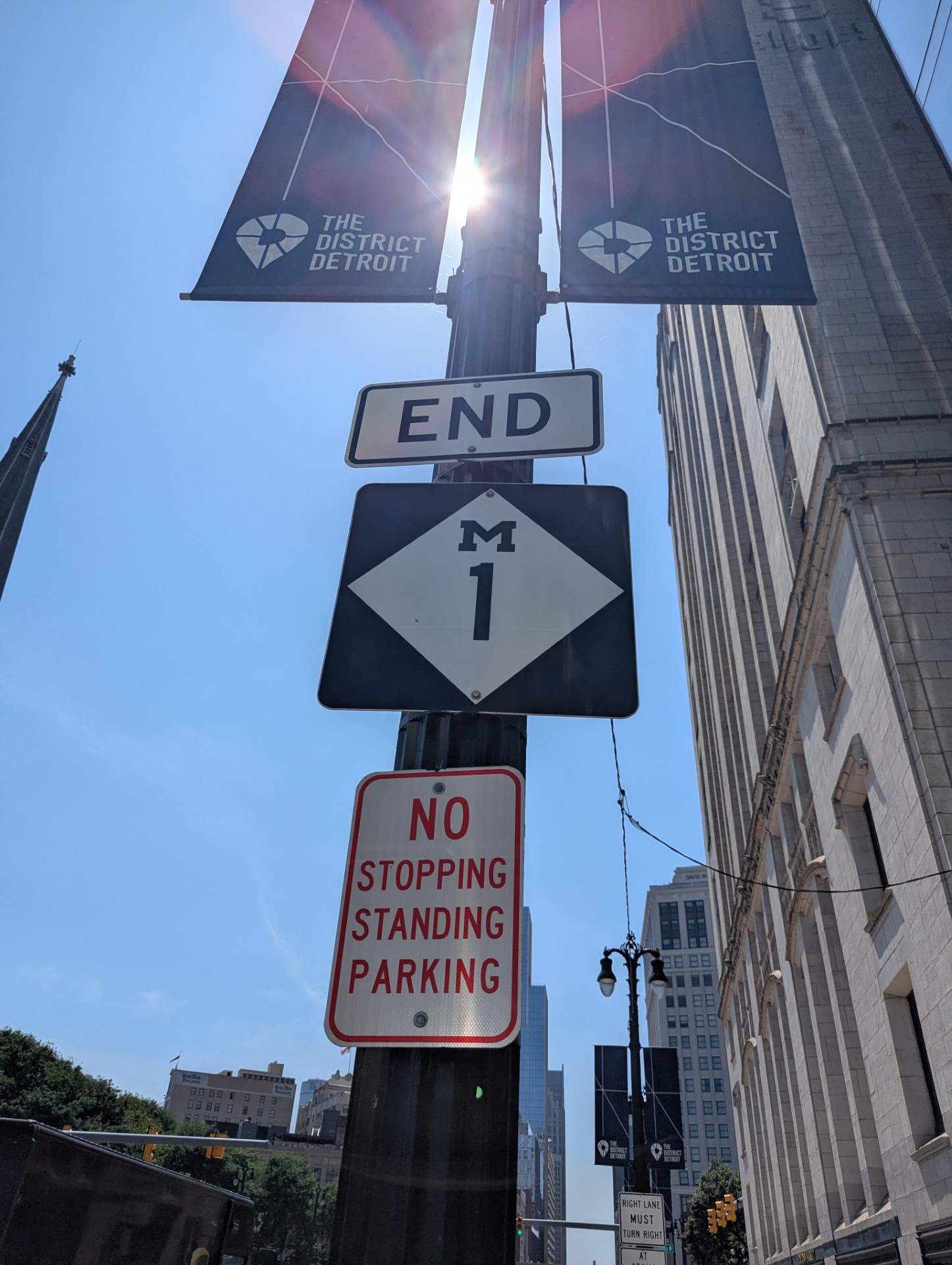 The end of M1, the highway number for Woowdard Avenue.