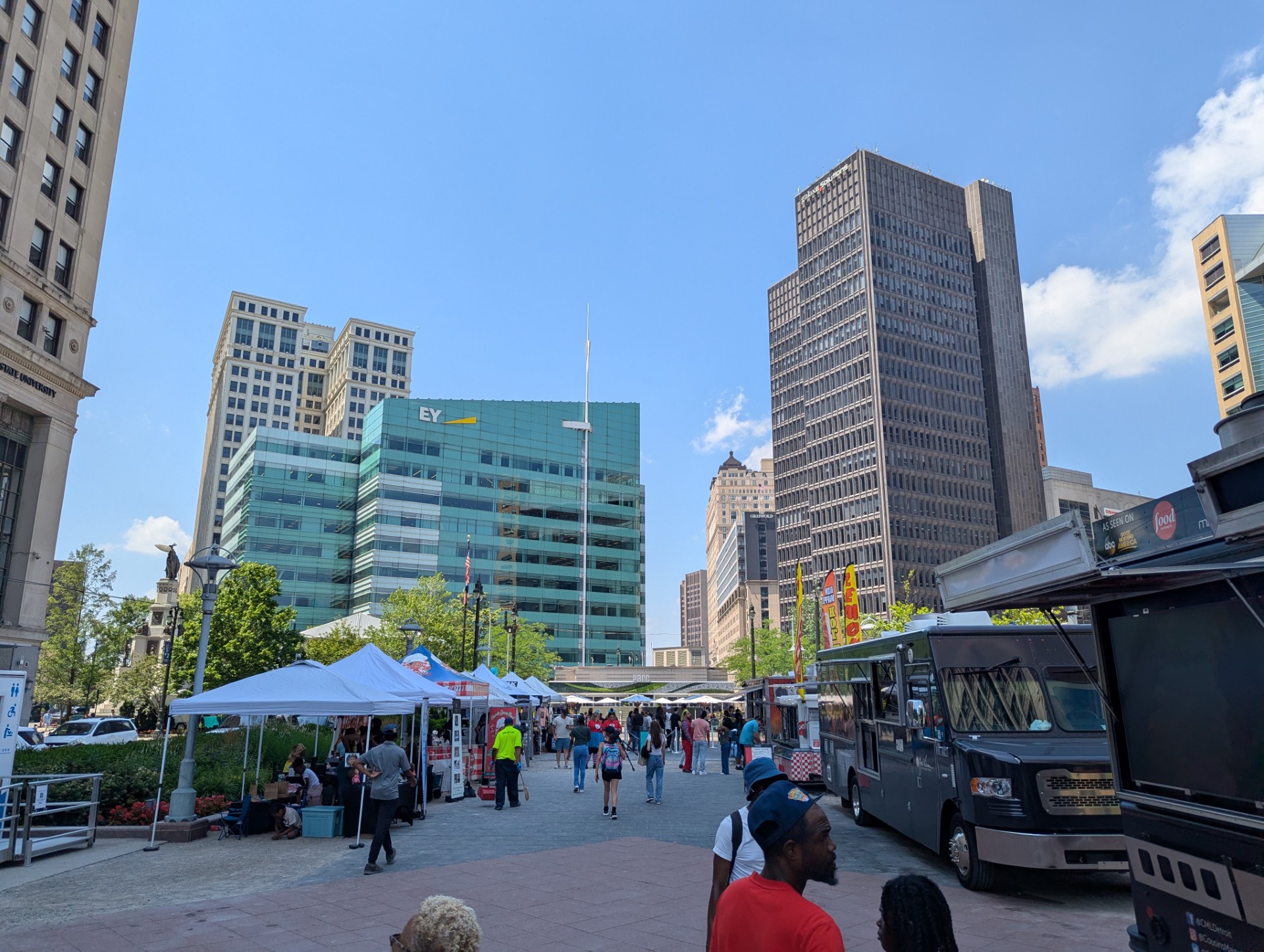 Campus Martius Park and One Kennedy Square in the background.