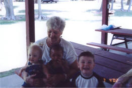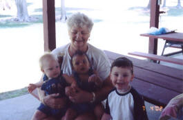 Great-Grandma Beulah with Samantha, Donovan, & Tyler.