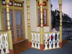 Tyler and Sam in a scene inside the fort. Tyler standing on a fake porch inside the fort.
