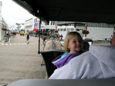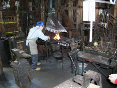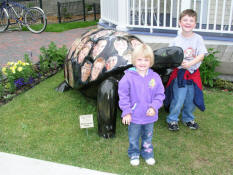 Sam and Tyler standing with a turtle (one of many spotted throughout town). A blacksmith working.