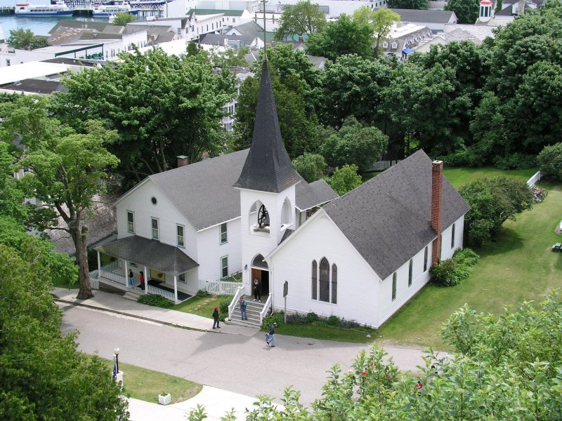 The church as seen from inside the fort. The Mackinac bridge from inside the fort.