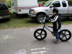 Adam riding my old bike - notice the backwards helmet. |