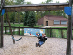 Adam on the tire swing. |