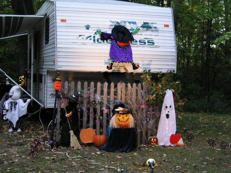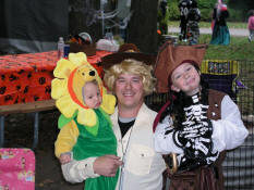 dressed for Halloween (or holding kids dressed for Halloween). |