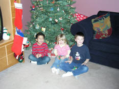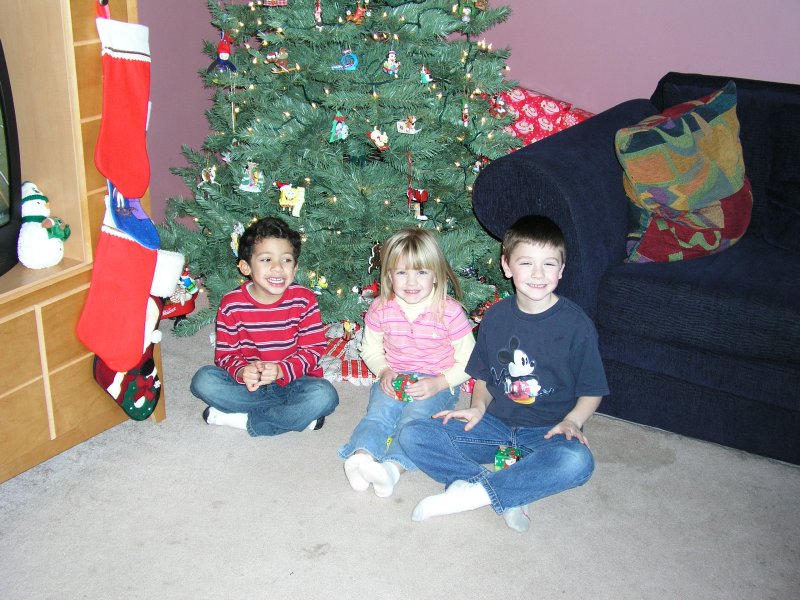 Donovan, Sam, & Tyler sitting in front of the tree (Marissa was