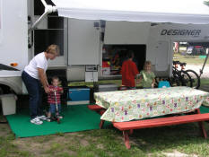 We went back to the St. Ignace/Mackinac Island KOA for our Labor Day weekend camping trip. The primary reason for this annual trip is to participate in the annual Labor Day Bridge Walk, but the entire weekend is an enjoyable experience for the entire family. For more information on our trip, feel free to read the Diary. After the craft show, and dinner out, Dad, Samantha, & I went to the Straights State Park to run some errands and take some pictures. On Sunday, Tara & I took Tyler, Samantha, & Drew up to the gift shop in front of the KOA, called Totem Village, to browse through their merchandise and see the "wild animals" that they have. |