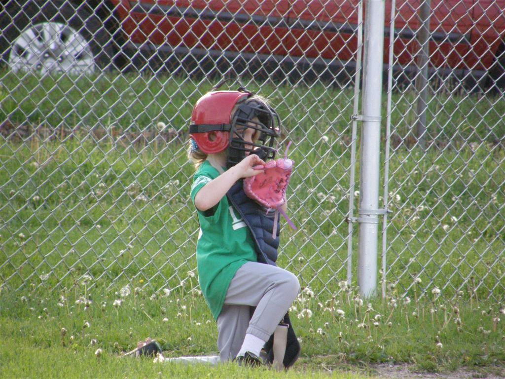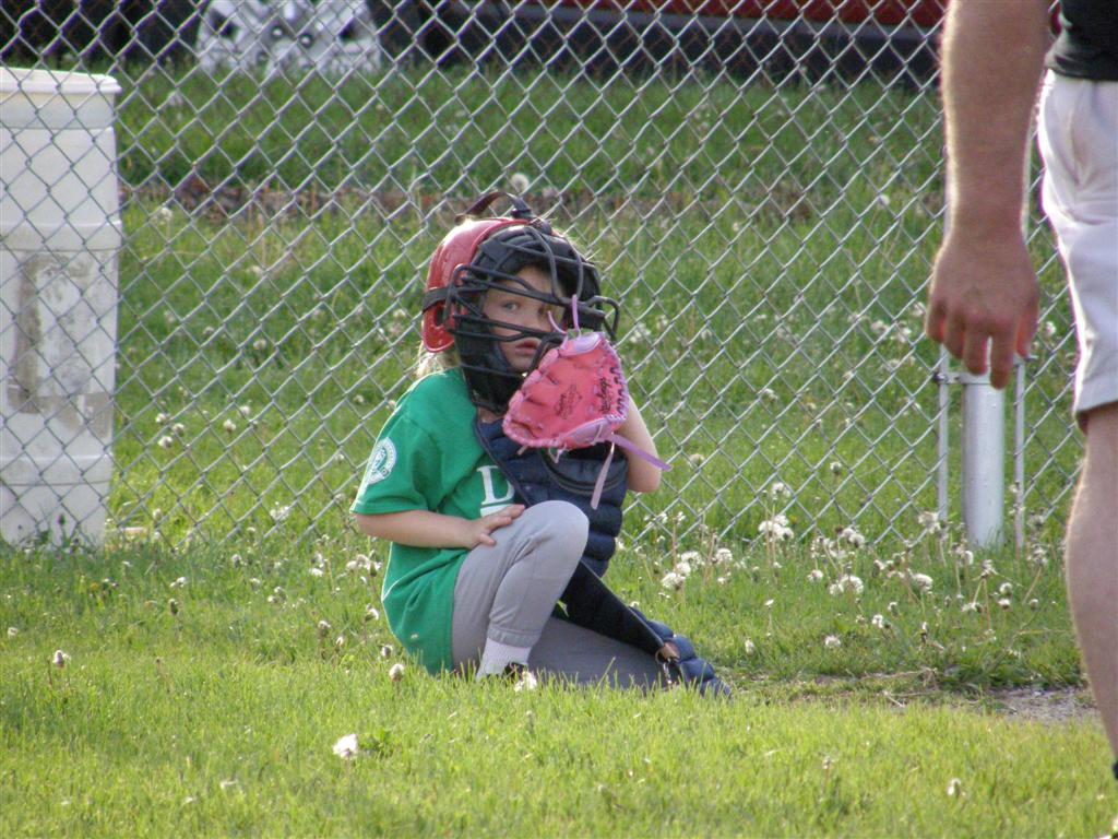 The season has officially started, as both of the kids have played games now. Since they occur during the week, I am at work while the kids play. Tara will do her best to take pictures, but with three other kids to worry about as well this may not happen all of the time. In fact, the camera was forgotten for Sam's first game - so no pictures of that. Tyler had his first game in a coach pitch league on Tuesday, May 8th. He struck out twice, but got a hit in his last at-bat and also scored one run (by sliding into home to avoid a tag). His team won the game 13-6. He played two innings as catcher, two as shortstop, and two in left field. Just for a reminder, Tyler's team wears the green uniforms, and his number is 2. Well, the process of getting pictures taken has proven difficult, as Tara has been "volunteered" into helping the coaches out at the games (especially Tyler's, where she apparently has become the official score keeper). She did manage to get some pictures of Samantha's game on the 14th. Just as a reminder, Sam's team wears green uniforms, and her number is 3 (although you can't see it in any of these pictures anyway). | ||||||