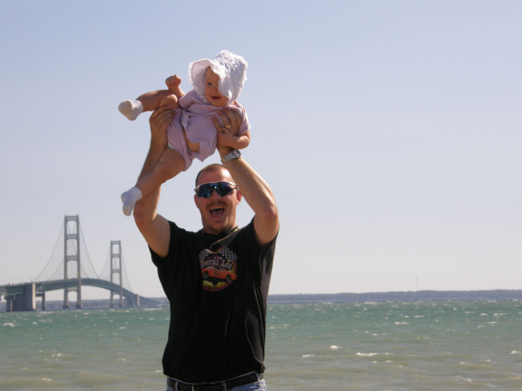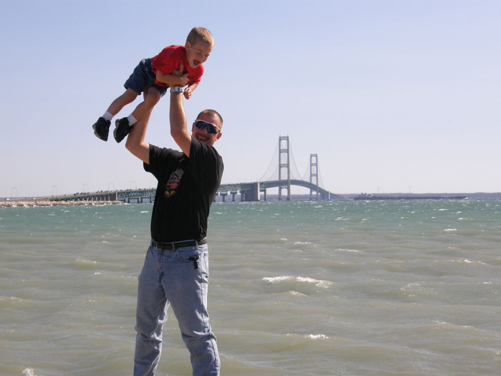 Rodney holding Drew over his head - and yes, he is laughing and not