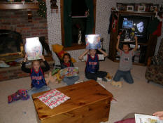 Terry watching Sam, Marissa, and Drew with their gifts. |