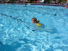 Grandma Terry took Tyler and Samantha to the pool for a dip.