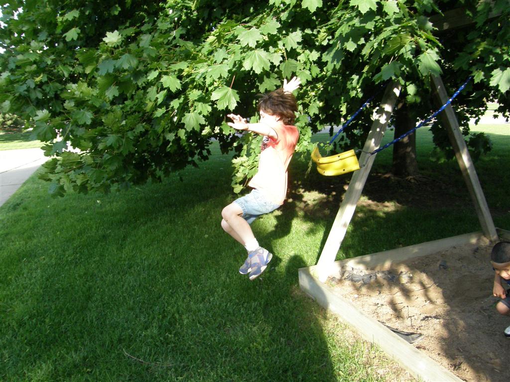 Drew enjoying his turn on the swing. |