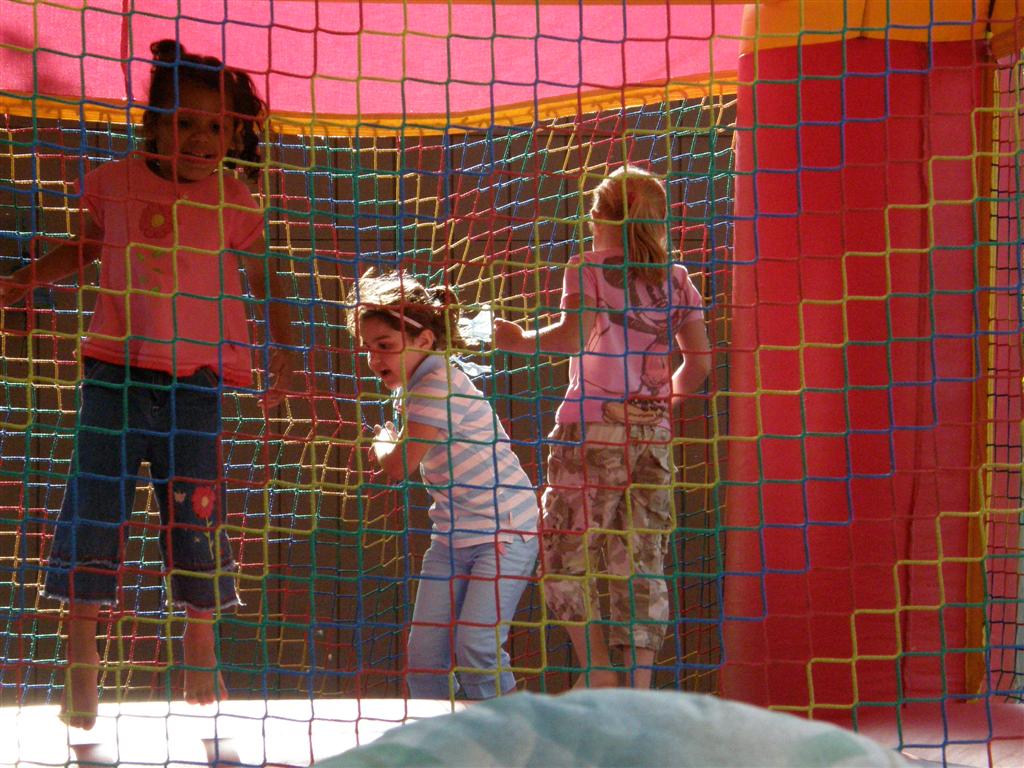 Donovan, Tyler, Marissa, and Samantha in the bounce house at Don &