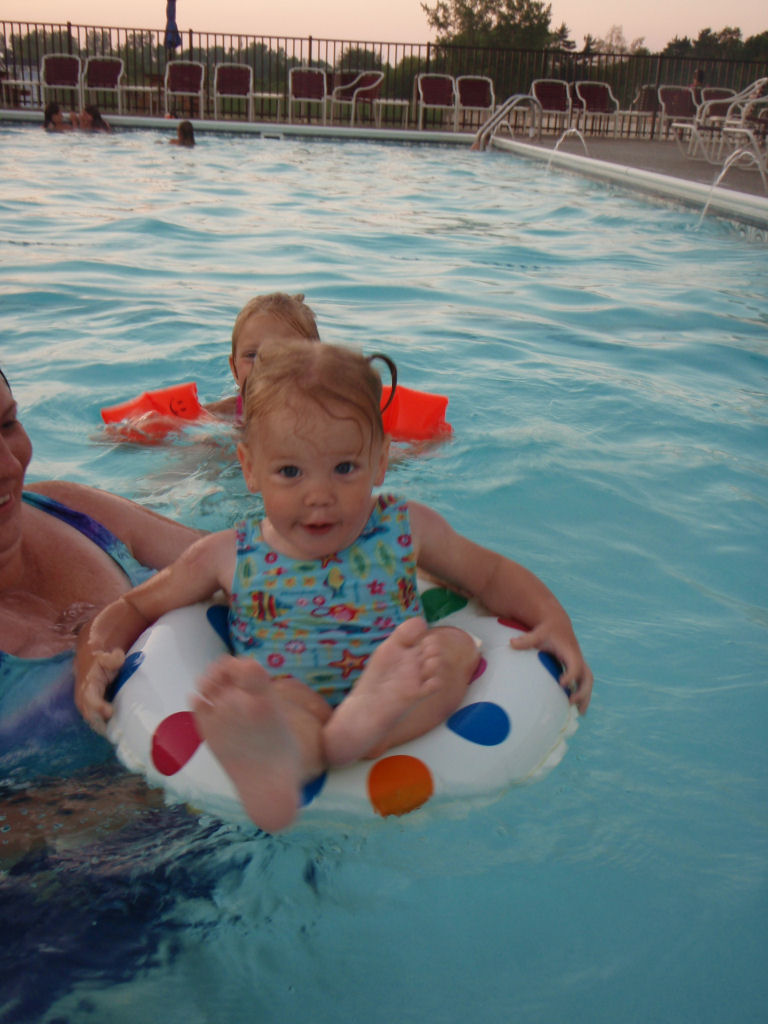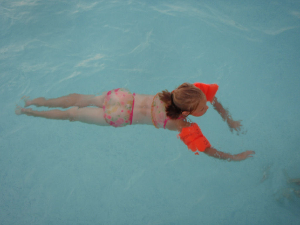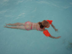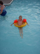Samantha floating in the pool. |