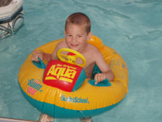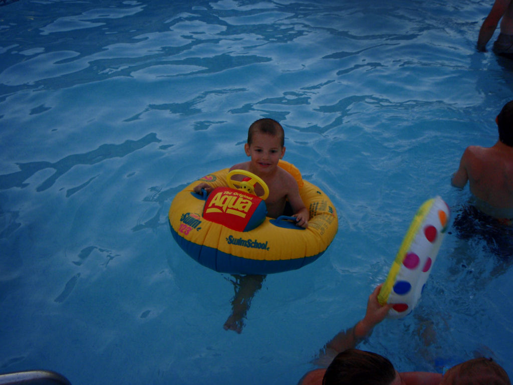 Jay floating in a tube. |