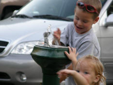 Jayden and Rodney posing in front of the bridge. Jay wasn't too