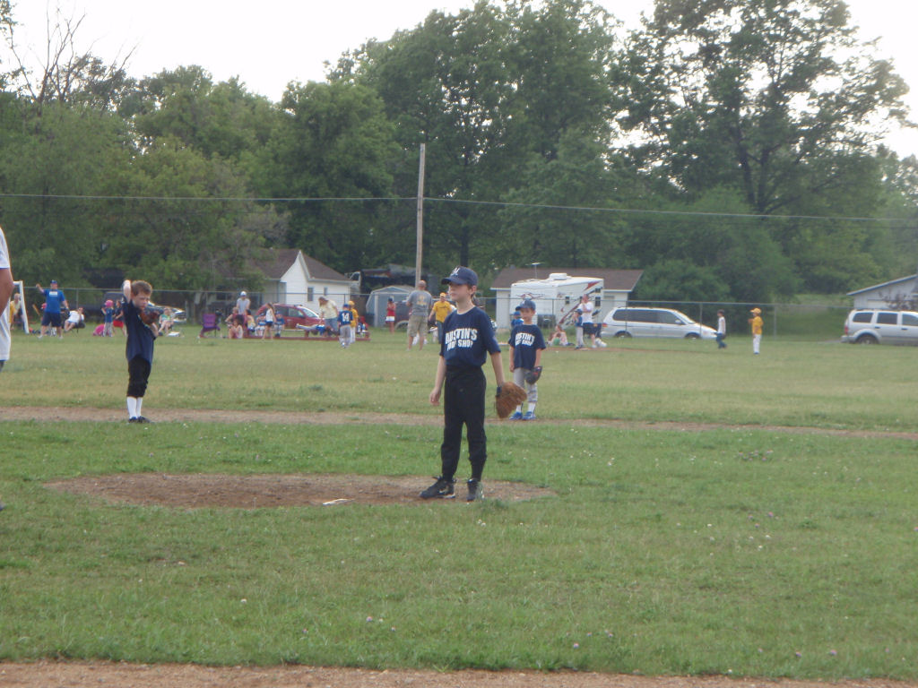 Tyler playing pitcher (the kids don't pitch, but he did at one of