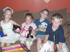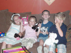 After school on Samantha's birthday, Tara picked up Sam and her friends and took them to see the opening of "Kung Fu Panda". The kids all seemed to enjoy themselves at the movie. Afterward, they came back to our house to hang out and eat pizza. Hailee and Trevor went home later in the evening (they had soccer games in the morning), but Calvin stayed the night and went home after breakfast in the morning (on the way to the kids baseball practice). |