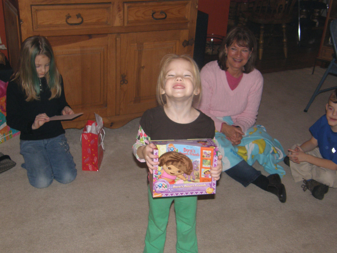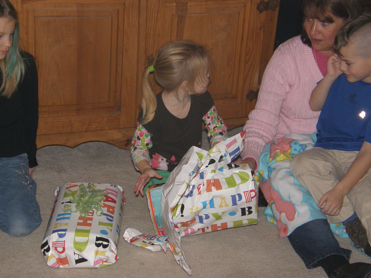 opened up her gift from Grandpa Jerry and Grandma Gail. She later