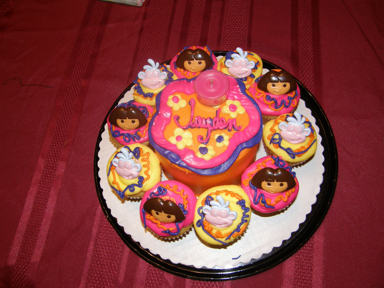 Jayden's third birthday cake, featuring Dora the Explorer.
