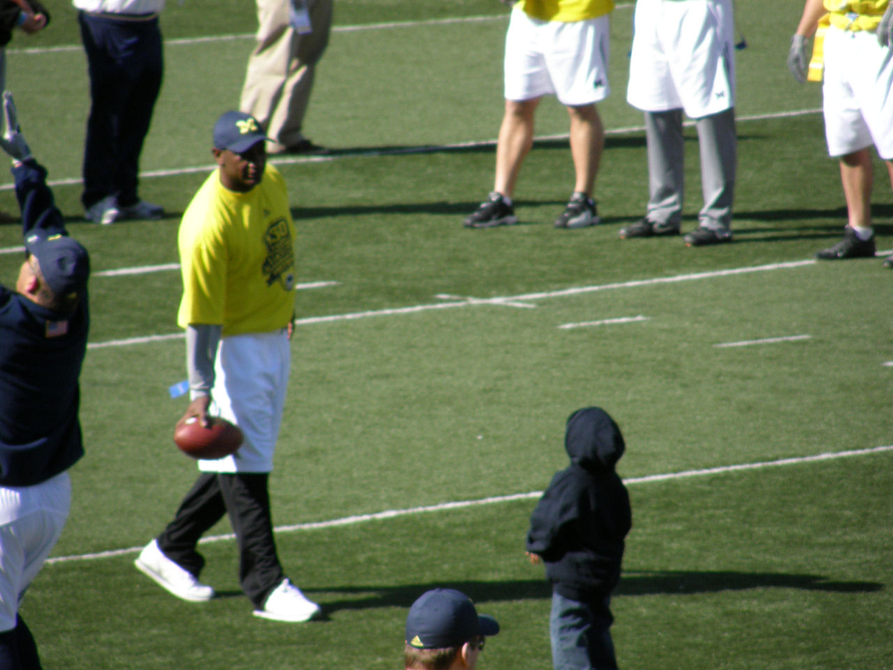 We woke up bright and early in the morning (well, it wasn't really bright out yet, and we weren't even completely awake) to make the drive down to Ann Arbor to attend the University of Michigan's Spring Game. We arrived a little after 8:00am to get in line for the tour of the locker room. It took us over an hour to get inside, but to me it was worth it. Aside from being rushed through and not being able to take the pictures I would have liked, it was pretty cool to see inside. It wasn't nearly as big as I thought it would be, though. After our walk through the locker room we headed inside the stadium to watch the alumni flag football game. It was pretty neat to see some of the former players back on the field again. After the alumni game was finished, we were treated to the current teams final spring practice. We saw some nice plays offensively, and hopefully with some more practice in the fall they can improve upon last years dismal record. After the practice was over, we headed to the M-Den to see what was available for purchase (Tara found a nice sweatshirt on sale) before heading out of town. On our way home we ate lunch at Red Robin, at my request. After eating too many fries, we headed home to relax for the remainder of our day.