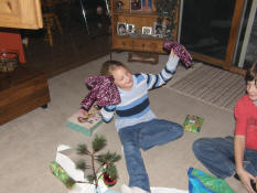 Jay, Sam, Tyler, and Donovan checking out their presents.