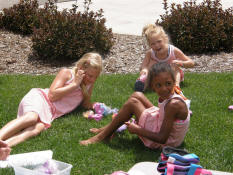 Donovan, Samantha, and Drew playing keep-away with the new mini