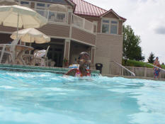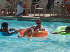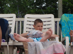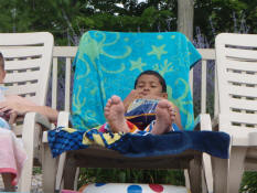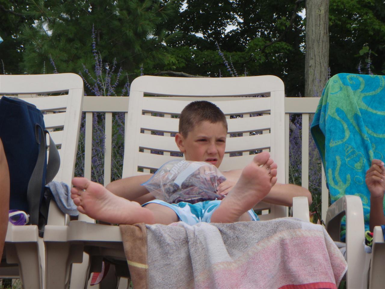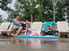 Grandma Terry, Tyler, and Donovan sitting on the lounge chairs