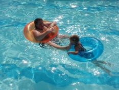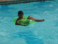 Donovan floating in his tube.