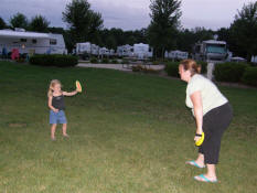 Jayden and Tara playing catch with the velcro mitts and tennis