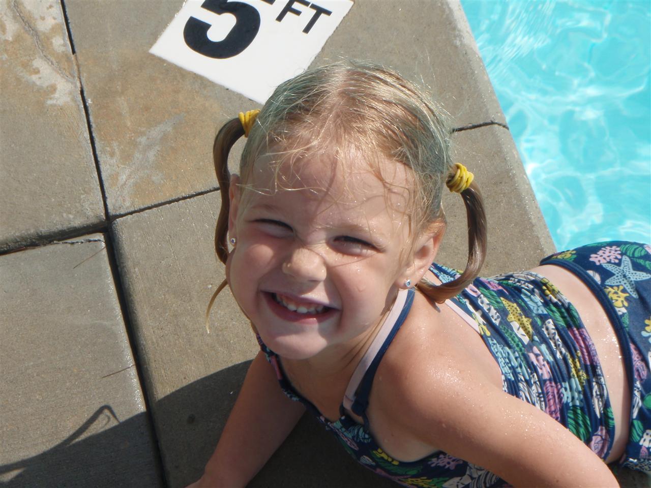 Jayden laying on the edge of the pool.