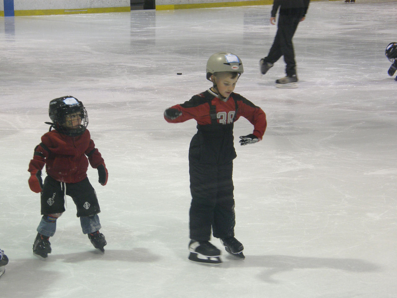Drew's fifth skating lesson, on April 25th, was spent skating across the width of the ice. They also worked on starting heel to heel and then gliding around so that they were toe to toe - kind of like a parentheses... ( ). During class Tara took the time to sign him up for another session, so for now the hockey dream lives on! After class Drew and I took a few laps around the ice before unlacing our skates and heading out until next weekend. |