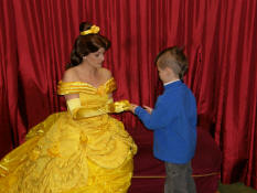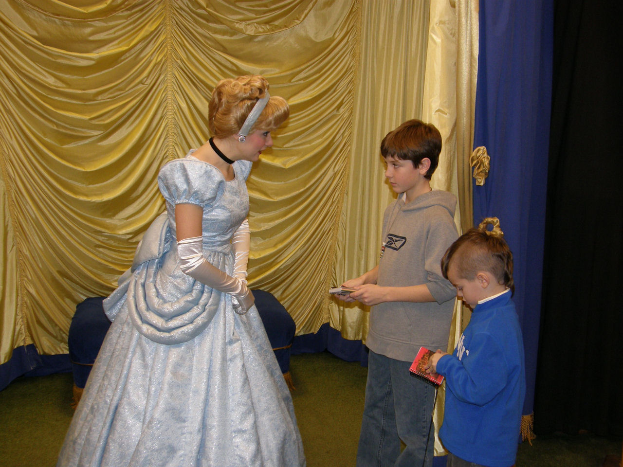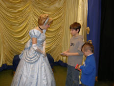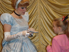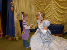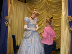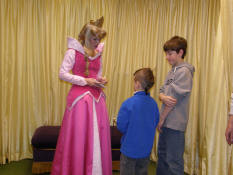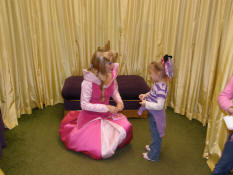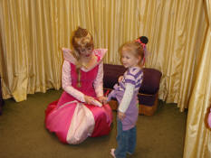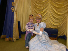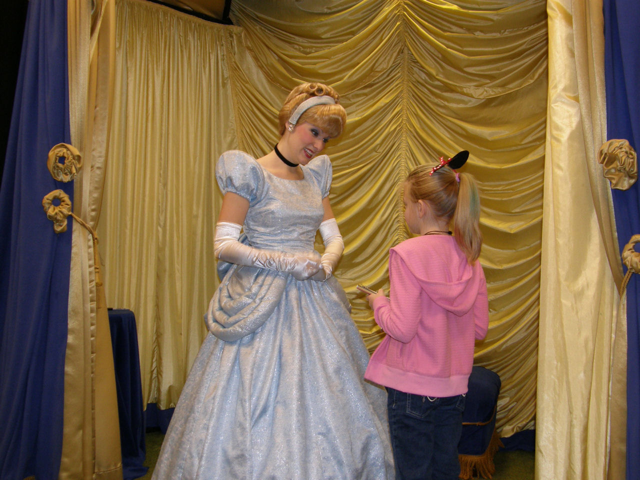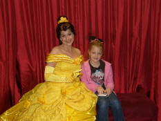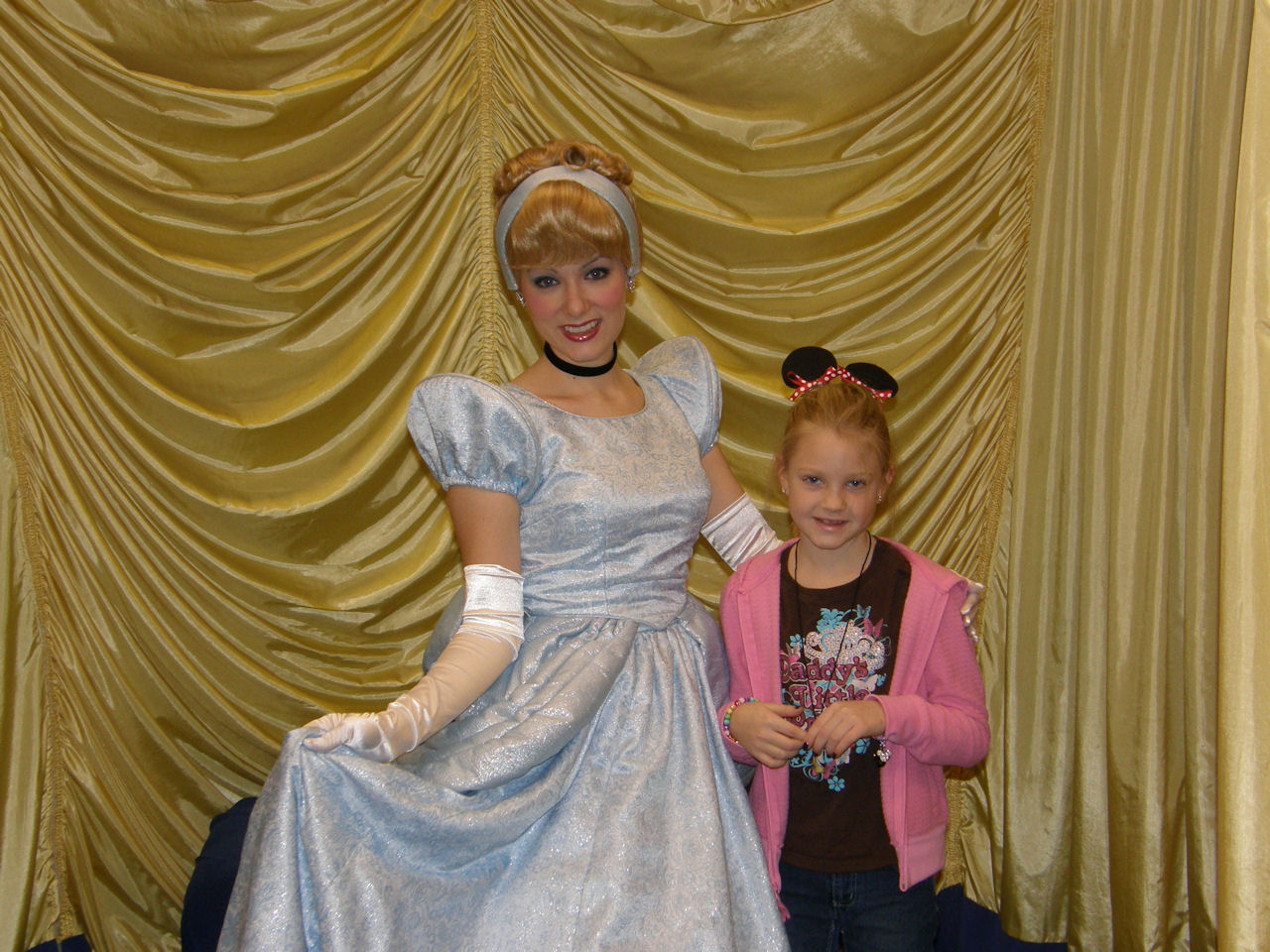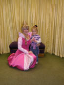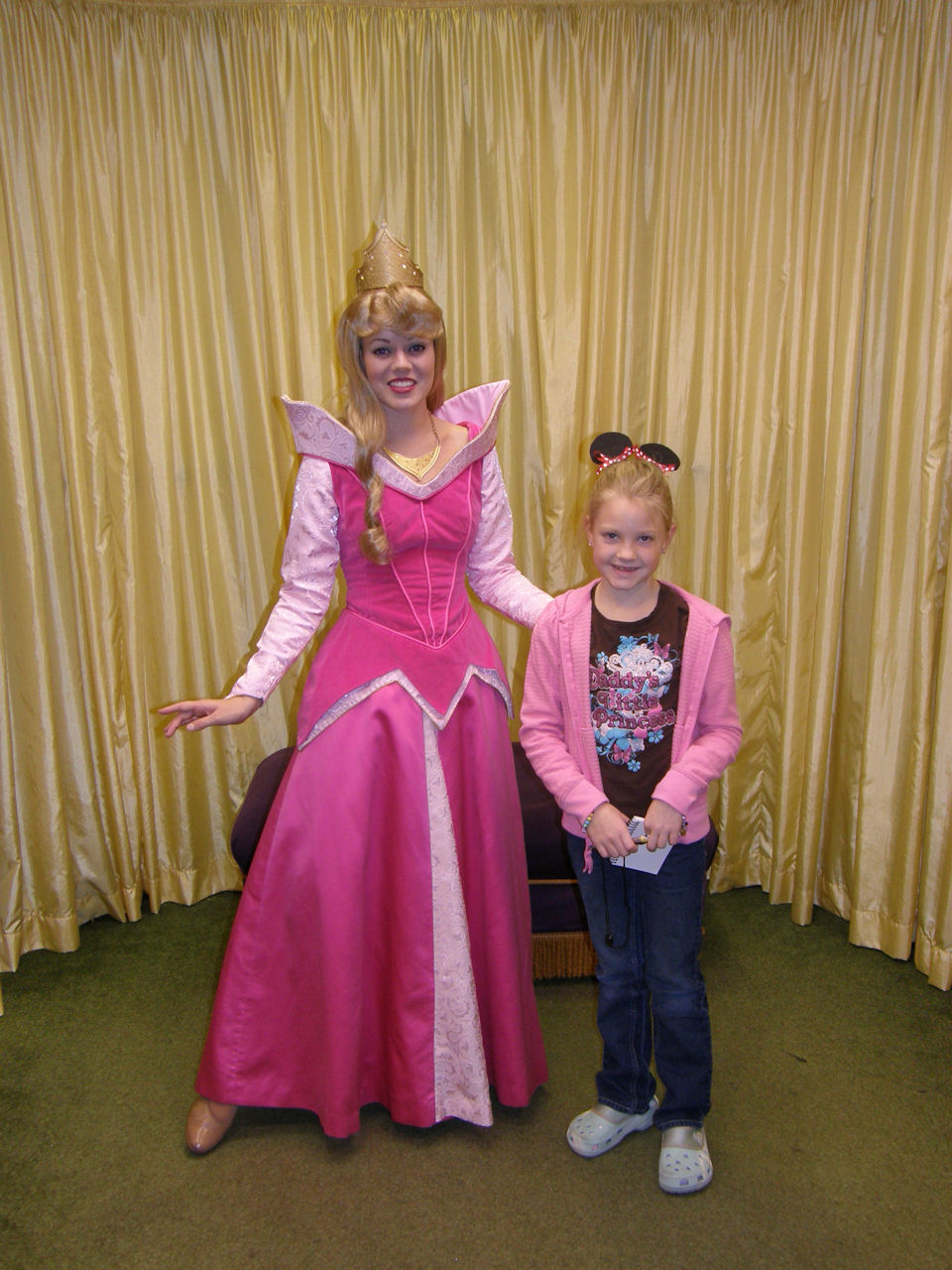 Samantha standing with Princess Aurora, from Sleeping Beauty, in