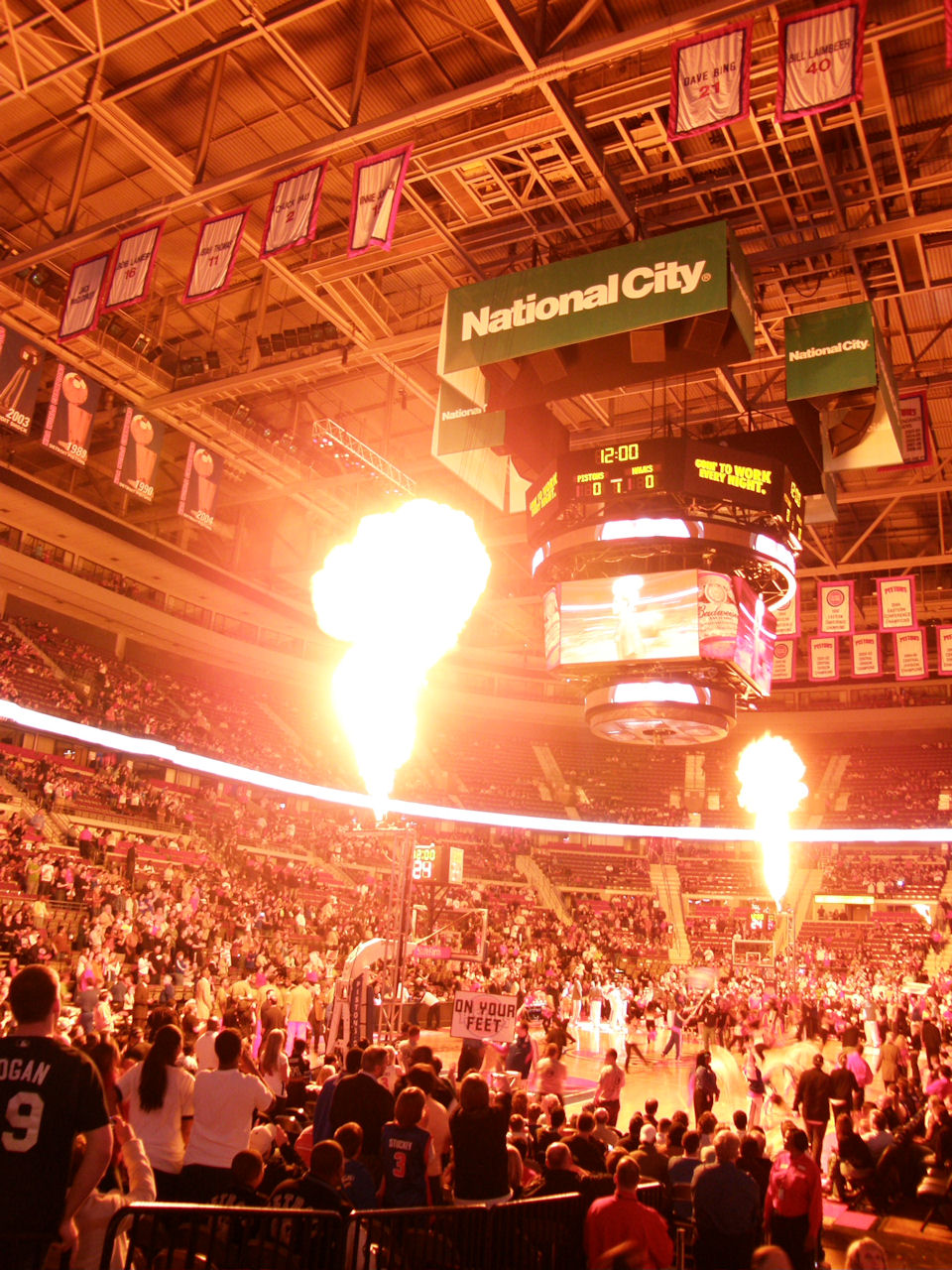 Tyler and Samantha brought home a voucher for a free ticket to a Detroit Pistons game from school earlier this year, but Tara & I decided that we didn't want to pay for the extra seats that we would need and end up sitting in the nosebleed section like we did the last time we attended a game (read about those seats at the bottom of this page). We instead scoured the internet (thanks, StubHub!) for cheaper seats that were also way closer to the floor than we could have gotten otherwise. Unfortunately Tyler and Sam couldn't come to an agreement on an opponent for the game that they wanted to go see, so Tara & I chose one that fell during their spring break from school. We made it to the Palace early, and when the usher showed us to our seats the kids were thoroughly impressed. Tyler counted 10 rows of seats in front of us to the court, but there was a large open area in front of where we were sitting. The kids thought it was great that we sat next to the tunnel where the visiting team players (in our case, the Atlanta Hawks) come onto the court. Tyler ventured down a couple of rows to get some high fives as the players headed to the court, and came back saying that he could even smell their deodorant! They were also very impressed by the fact that we had a waitress to take our food order and deliver it to us. Our waitress was even kind enough to point out which items came with free refills and offered to bring us empty glasses of ice so that we didn't need to get a drink for each of the kids. Big thanks to her! We were warned by our waitress and an usher that the pregame introductions would get loud where we were seated when the flames shot up from the backboards, but I don't think we were quite prepared for how loud the noise actually was! All six of us had our hearts skip a beat as we jumped in our seats. We were also amazed by how hot the flames got, even from where we were sitting (in the corner of the court, not right behind the flames). I cannot imagine how hot it would have been had we been any closer to the basket. Tara even ran into somebody she knew while she was on the concourse getting refills/taking the kids to the bathroom - her sister Amy and her son Skyler! They were seated in the section immediately to our left, directly behind the basket. As I said when Tara ran into people while we were at Disney World at Christmas time, it truly is a small, small world. The best part about the game was that the Pistons won in an extremely exciting finish, 90-88. I wish they would have played like this all season, though, and not at the end of their year, because now they are just screwing up their draft position! Oh well, I am glad to say that I saw a winning team play, and now Tara & I are 2-0 when we attend a game this year (the Red Wings also won then went, read about it on this page). Although not this season, I am sure we will be attending another game in the future. We all enjoy the excitement too much! |