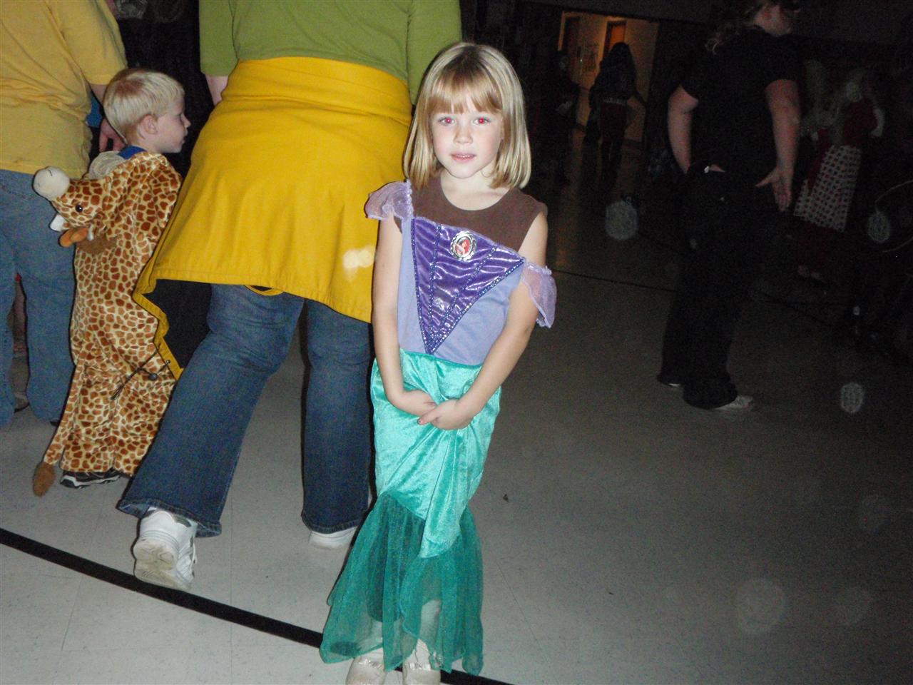 Jayden showing off her costume in the gym.