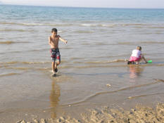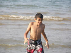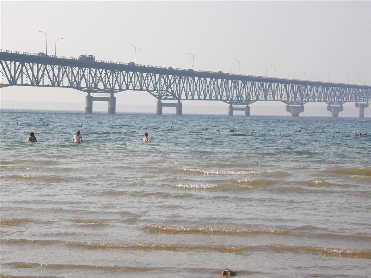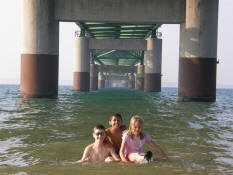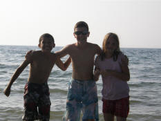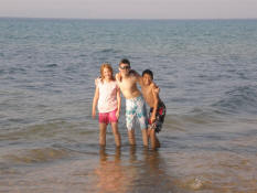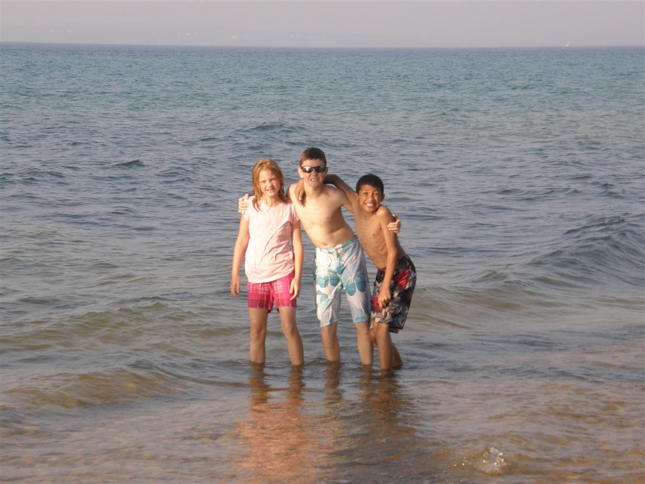 Samantha, Tyler, and Donovan posing for a photo in Lake Huron.