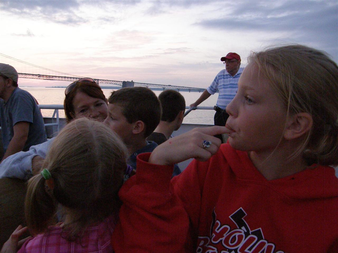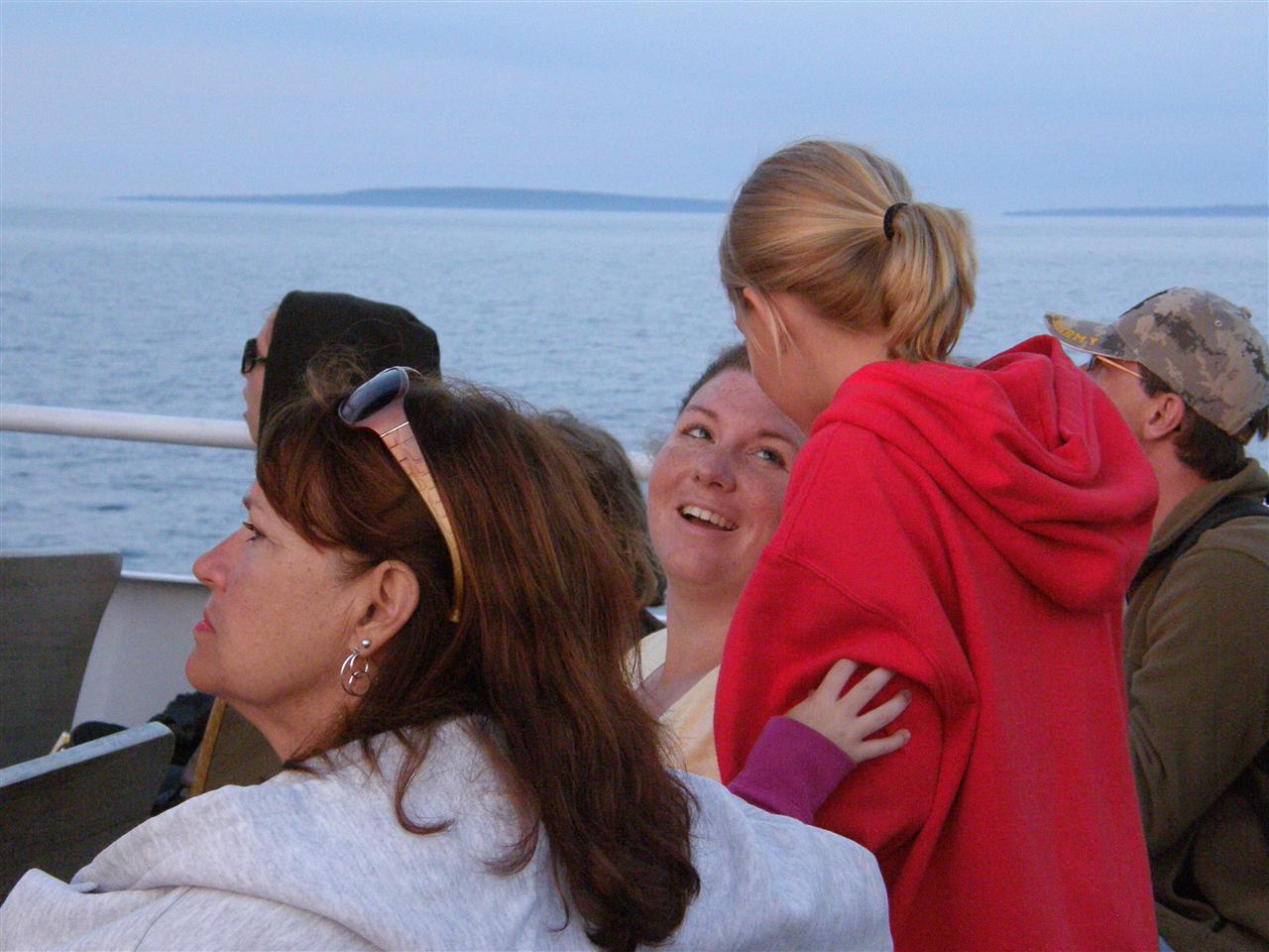 Terry, Drew, and Jayden carry on a conversation as Sam licks her