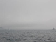 Drew and Jay wearing their "glasses" as Tara quietly chuckles at