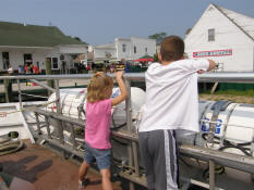 Jayden and Drew standing at the front of the boat as we wait to